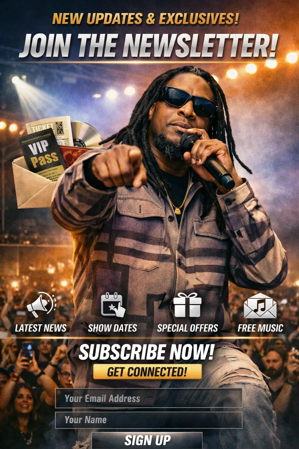 Stay up to date with new releases, shows, and behind-the-scenes content.